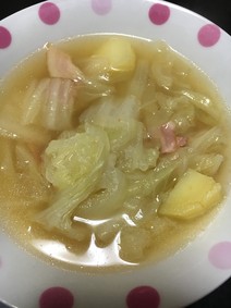 今回は白菜とベーコンに野菜だしを入れたスープと野菜だしを使ったナポリタンを作りましたが色んな野菜の味がするのでどちらも好評でした。