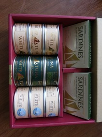 こだわりの高級素材「一本釣り夏びん長マグロ」のみを原料としたツナ缶「オーシャンプリンセス ホワイトツナ」3種と、国内水揚げの近海いわしをイタリア産エキストラバージンオリーブオイルで漬け込んだ「オイルサーディン」のギフトセット。