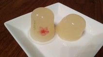 さて賞味させて頂くと、一番驚いたのは、完熟桃の果汁が一滴も漏れないのです。ゼリーは果汁たっぷり!というものが多いですが、こちらの「プチ完熟白桃ぜりー」は一切の嘘がない実感!つるんと出て来るわけではなく、トロッと備え付けのスプーンで上品に食べることが出来ます。芳醇な桃の香りが口の中いっぱいにひろがっていきます。桃がそのまま入っているような感じで歯ごたえもあります。常温保存ですが、冷やして召し上がることをお勧め致します。