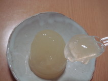 一般的なゼリーとは違いツルンと出てくるものではなく、トロっとした食感のためスプーンをお付けしております。手作業で裏ごしした完熟桃果汁を多く使っているため凝固も緩めになっております。お日持ちも長めで、お手土産、ご贈答にも好評です。
