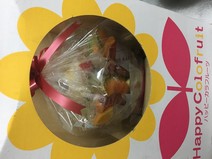 ハッピーカラフルーツはフルーツを花束にみたてたアレンジメントです。デイジーは紙製容器ではなく陶器の植木鉢に入っています。