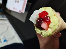 和を感じるクレープです。抹茶クリームはしっかり抹茶を感じました。いちごと求肥、あんことの相性も抜群です。