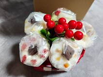 見た目も可愛らしい、花束のような「クレープ」です。クレープ生地には栄養価の高い「和食のたまご」と成分無調整豆乳を使用し、もっちりとした食感に仕上げています。一口食べた瞬間の味わいを追求し、生クリームはトッピングごとにあっさり味と濃厚味を使い分けています。「抹茶いちごもち」「モンブラン」「ストロベリーチョコ」「メープルナッツ」「オレンジショコラカスタード」の5種類がセットになっており、異なる味わいを食べ比べられます。ギフトやプレゼントにはもちろん、自分へのご褒美にもぴったりです。