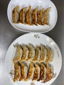 調理は届いた次の日行い、それまで冷凍庫へ。いざ調理しようと箱をあげてビックリ。一つ一つが結構ボリューミーな餃子が12個綺麗に並んでいました。「餃子の美味しい焼き方」が詳しく書いてあったお陰で、餃子の裏にカリッときつね色の焼き目がつき上手に焼くことが出来ました。