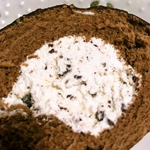 チョコレートを練り込んで焼き上げた生地でチョコチップを忍ばせたクリームをくるっとひと巻き。アーモンドを混ぜ合わせたチョコレートでコーティングしました。中はふわふわ、外はカリッとした食感の楽しいケーキです。カカオの風味を心ゆくまで味わえる、チョコレート好きにはたまらないひと品です。