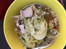 今回は到着して2日以上経って食べる事になり、スープやもつは事前に火を通した後に保存していたので、当日はキャベツが煮えたらすぐに食べ始める事が出来ました。