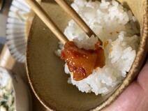 いつも食べていた他の鮭キムチは辛って感じなのでそのつもりで食べたら まろやかな辛さで驚きました。