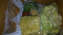 ずっしりと重たい段ボールを開けると、真空パックされたスープ、お野菜、麺、唐辛子、にんにくが入っていました。