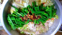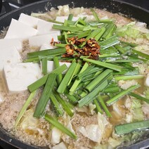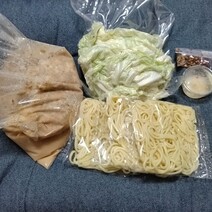 もつ肉600g、スープ(味噌味)1200g、野菜、ちゃんぽん麺225g、薬味(唐辛子・にんにく)