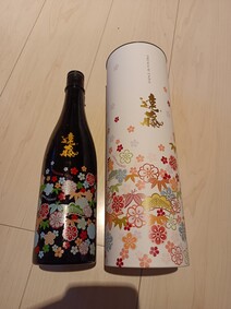 艶やかなギフトボックスを開けると、松竹梅をあしらった重厚感のある黒いボトルが姿を現します。