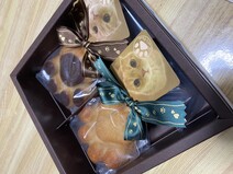 可愛い肉球型で焼き上げた「猫の手フィナンシェ」です。プレーンの生地にチョコの肉球をあしらった「キャッツポウコンビ」と、メープルシロップをたっぷり使って焼き上げた「キャッツポウメープル」の2種類の詰め合わせです。フィナンシェ生地にもたっぷりとバターを使用し、食べ応えも十分。ラッピングのリボンも肉球柄、タグにはスコティッシュフォールドのフクくんが描かれ、と猫猫づくしのギフトボックスです。可愛らしさ満点のフィナンシェなので、自宅用だけでなく贈り物にもぴったりです。