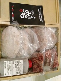 大阪道頓堀にある焼肉屋の「A5黒毛和牛の赤身ステーキとハンバーグ」セットです。A5黒毛和牛をふんだんに使った自家製ハンバーグ。肉汁溢れる大判サイズ(約150g)なので、食べ応えも十分。付属の自家製和風にんにくソースとの相性抜群です。約100gの程よいサイスの「赤身ステーキ肉」。A5ランクの黒毛和牛の甘みと旨味を十分に堪能できるので、塩と胡椒で楽しむのがおすすめです。贈答用のボックスに入り、風呂敷に包まれて届くので贈り物にもぴったりです。