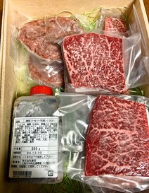 A5黒毛和牛100%のハンバーグ5枚・A5黒毛和牛赤身ステーキ3枚の合計1kgが入った満足度抜群のセットです。