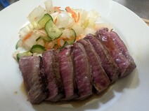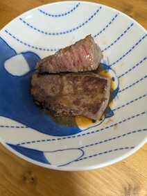 ステーキは焼きすぎたのか少しかためでしたが、赤身の肉肉しさがあって、噛み応えがあり美味しかったです。
