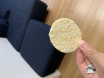 肝心の中身だが開けた瞬間、白いまん丸なおせんべいが出てきて、お米の香ばしい香りがふわっとして早く食べたくなる。