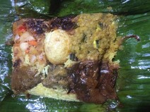 バナナの葉に包まれているので、少し長めに温めることで食材が蒸され、葉の香りがより一層際立ちます。