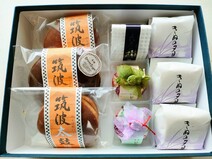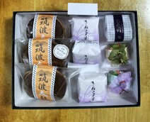 老舗和菓子屋の人気商品を詰め合わせた「和菓子セット」です。粒の残る大納言の食感と風味が抜群の「きぬの夕月」、しっとりふんわり焼き上げたどら焼きの皮と、柔らかく炊き上げた粒あんがベストマッチの「翁屋どら焼き」、粒あんに栗とお餅を合わせた「菓音」、ふっくらお餅と自家製こしあんのハーモニーがたまらない「六花の精」の4種。異なる味わいのセットなので、食べ比べが楽しめます。上品な化粧箱入りで、贈り物にもおすすめです。