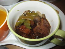 一つ一つが大きめの塊にもかかわらずすっとお箸で割けるほどの柔らかさ。赤ワインを煮詰めたソ-スは旨煮が凝縮されていてしみじみと味わい深いです。