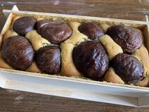 希少な丹波栗を使用した「丹波栗のケーキ」です。丹波栗は希少価値の高い和栗の中でも、さらに希少で最高級の栗で、肉質と甘みを持ちながら粒の大きさも際立って大きいのが特徴。その丹波栗を丸ごと8粒豪華に飾り付けた華やかさはまさに圧巻です。メープルシロップに漬け込んだ特別な和栗と合わせて、14粒の栗がゴロゴロと入っています。フレッシュなブルーベリーをアクセントに、蜜芋の生地で「しっとり」と、まとめ上げた贅沢な商品です。上品でありながら、凝ったパッケージなので、贈答用にもおすすめです。