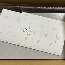 デリーモカラーのグレーとグリーンを基調にした、シックでシンプルなお包みでお届けします。