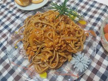 ソバ粉薫るモチモチした食感の麺がとっても美味しいです。食べやすい太さの平麺なのでソースが絡みやすいのも扱いやすいです。