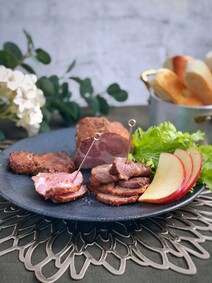スパイスの香りとのピリ辛さを感じ、しっとりとしたやわらかさが楽しめる「ローストラム」です。厳選したラム肩ロースを原料に、時間をかけ低温でじっくり熱を入れることで中はロゼ色に仕上がっています。添加物は使用せず羊肉に塩、香辛料のみで仕上げています。シンプルだからこそ、程よいスパイスとラムの旨味を十分に感じられる商品です。好みの厚さにスライスして楽しむだけでなく、オリーブオイルをフライパンにひきブロックのまま軽く温めるのもおすすめ。美味しい食べ方のリーフレットも同梱されているので、初めてでも安心です。