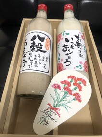 「白あまざけ」にはお花のイラストと共に「おかあさんいつもありがとう」の文字入り。