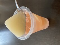 他のゼリーと異なり、山葡萄そのものは入っていませんでしたが、山葡萄から抽出された果汁がほどよい甘さでした。