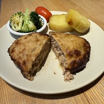 このハンバーグは、自社農場で育てられた銘柄豚「館ヶ森高原豚」を100%使用しています。