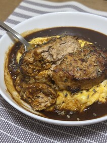 レンジで温めてお皿に盛った際に肉汁が!とてもジューシーさが伝わりました!ナイフを入れるとまたジューシーな肉汁が出て来て、肉厚で食べるとふわっとした食感の中にお肉ひとつひとつの存在感を感じました!