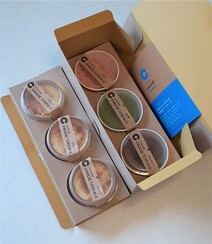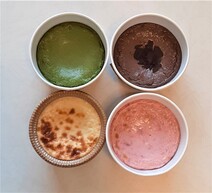 一段がプレーン*3個、もう一段は抹茶、いちご、チョコレート*1個。小さめのカップアイスくらいの大きさです。