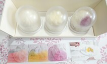 フルーツ果汁をたっぷり使った3種類の「ムースケーキ」のセットです。生絞りオレンジのムースとパッション&マンゴーソースを、爽やかな酸味と甘みのレモンムースで包みこんだ「感ーTokimekiー」。甘酸っぱいラズベリー&いちごのムースとベリーソースを、口どけの良い艶やかなヨーグルトムースで包んだ「憬ーHikariー」。優しい香りのブルーベリーを、濃厚なクリームチーズ、ホワイトチョコのコポーで包み、相性抜群のクッキー生地を敷いた「寧ーNodokaー」。真っ白なフォルムのケーキは、フォークを入れると、それぞれの鮮やかな色が溢れ出だす萌え断ケーキです。