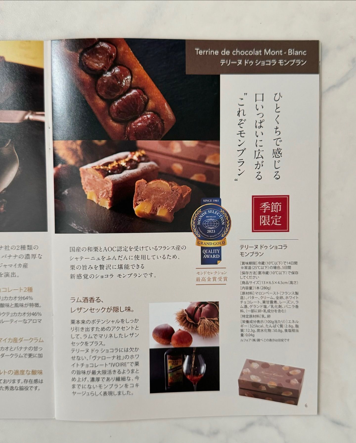 九州産の厳選和栗とAOC認定の栗シャテーニュダルディッシュをふんだんに使った栗の含有量が75%という栗好きにはたまらないショコラテリーヌモンブラン🌰