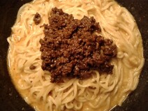 他は、「液体スープ」や「肉味噌」を湯煎で温めておくだけですから、調理時間もそれほど掛かるものではありません。