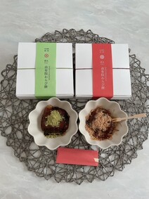 「由布院」のシンプルで飾らない自然の美しさを表現した「わらび餅」です。日本屈指の豊かな自然に恵まれた癒しの地・由布院。豊富に湧き出る源流の恵み・由布の天然水とわらび粉、てん菜糖、黒糖、きな粉など厳選した国産素材のみを使用し、添加物、着色料、保存料等は一切使用せず仕上げています。長時間かけて手煉りでじっくり煉り上げることで、今までにない繊細な食感、とろける口どけ、上品な味わいです。色鮮やかで抹茶の香り漂う「抹茶きな粉」と黒糖のコクを感じる「黒糖きな粉」が1個ずつセットになったお手頃サイズ。桐箱入りの詰め合わせで届くので手土産スイーツとしてもおすすめです。