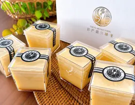わらび餅は、黄金色でトパーズやシトリンのように透明でキラキラ輝きます。