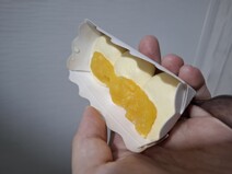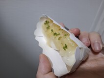 外はシンプルで、開けてみたら綺麗なスイーツ。爽やかで、アイスケーキなので、夏場の暑い日にも、勉強や仕事の休憩などにもいいけど、冬にこたつに入ったり、暖かい部屋でも食べたいスイーツです。下はシャリシャリの食感、上にクリームが乗ってて、その上に色々なソース?がありました。