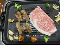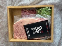 お店のお薦めとして入っていたのは、「上ロース」「ハネシタ」「カルビ」です。それぞれ3枚ずつ入っていたので、3人家族の私たちにとってちょうど良く、付けてくれていたもみダレをしみこませてホットプレートで頂きました。不思議なことに3人とも一番の好みが違っていて、バランスの取れた部位の選定をしてくれているのだと、驚きを感じました。そのあとにカッパとサーロインステーキも頂きました。やっぱりサーロインは肉の王様です。届けてくれたサイズでそのまま焼いて、程よく焼けたころに切っていって頂きました。ミディアムでは肉の柔らかさと甘味の口の中の拡がりに感動し、切った後プレートにおいていたのでウエルダンになってからでもカリカリした食感とその後の口の中に広がる肉汁のハーモニーが鮮烈でした。