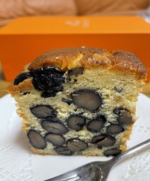 箱を開けるとオレンジ色の高級感漂う小さなBOXが。見ただけで嬉しくなります。フタを開けると目を疑いたくなる量の黒豆が!すぐに封を開け、早速カットしていただくことに。断面をみて、黒豆の多さにびっくり。生地の部分より黒豆が占める割合の方が多く感じるくらいです。こんなにゴロゴロ黒豆が入っているのに、カットしても形崩れしない柔らかさ。黒豆といえばおせちの甘いイメージがあり、一切れでも甘すぎるのではと少し心配でしだが、いざ口にすると黒豆のあっさりした甘さにまたびっくりしましまた。柔らかい食感、ほんわか口の中に広がる柚子の風味、相性抜群です。柚子の風味が強すぎず、黒豆の甘さやバター、蜂蜜が絶妙なバランスだからこそ、それぞれの香りや風味を感じながら楽しめる高級パウンドケーキです。