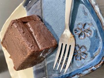 冷蔵庫でよく冷やして試食しました。とにかく、ずっしり濃厚です。口当たりはとてもなめらかで、まるで生チョコを食べているようです。そんなに大きくないですが満足感があるので、厚さ2㎝ほどにカットするくらいでちょうどよい量だと思いました。ブラックコーヒーがよく合います。ビターチョコが好きな私にはちょうど良い甘さでした。甘党の夫は、バニラアイスを添えて食べていました。夫も私も大満足でした。