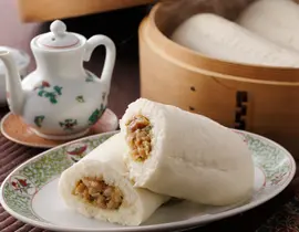 【餃子ドッグ】宇都宮名物の餃子をイメージしたボリューム満点の中華まん。生姜香る餃子風の餡を包みました