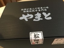 黒い箱の「特選松阪牛専門店やまと」の字、そして白い「松阪牛」のシールに期待が高まります。