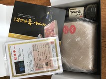 箱を開けてみると、中にはこちらの牛の証明書(少し悲しい気持ちに・・・)、箱を詰めた方のお名前が書かれたもの、美味しい食べ方を書いた立派な写真付きの説明書、今回はすき焼き肉ということで、すき焼きの割りした、そして主役のお肉と思われる包みが入っています。