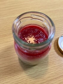 マンゴーは、フルーティーなゼリーで甘いプリンが南国気分にやや爽やかめに食べられます。その上ココナッツの香りと味わいがいい味を出してくれています。