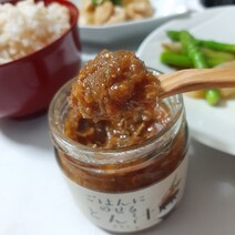 ごはんにのせるとん汁は豚肉とたまねぎのトロトロ味噌汁に生姜を効かせて肉味噌にした品物。