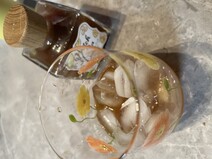 天然木の蓋を開けると、ふわっと香りがします。嗅いでみると、やさしいコーラの匂い・柑橘の爽やかさ・スパイスの折り重なる風味・・。液はわりとサラサラで、シロップといっても濃縮したとろみのような感じではないんですね。