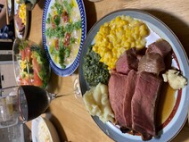 肉質はしっかり噛み締められる赤身、かつ柔らかく口中に香ばしさが広がります。 付け合わせのマッシュポテトなどもグレイビーソースが沁み渡り、ワインが進む進む。