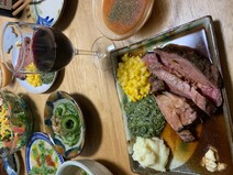 50℃の湯煎で20分という、何でもレンチンの時代にはやや手間のかかる調理法ですが、この時間さえもスパイスの一種。皿の上にプライムリブとアカンパニメンツが揃った時の眼福も味わいの大切な要素です。