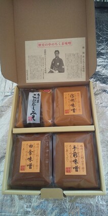 原材料にこだわり、創業330余年という永年培われた伝統の技術で丹念に造りあげられた「ちくま味噌」さんの4種類の詰め合わせが