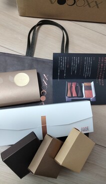 中の箱も添えられた手提げ袋もシンプルながら高級感ある質感とデザイン。